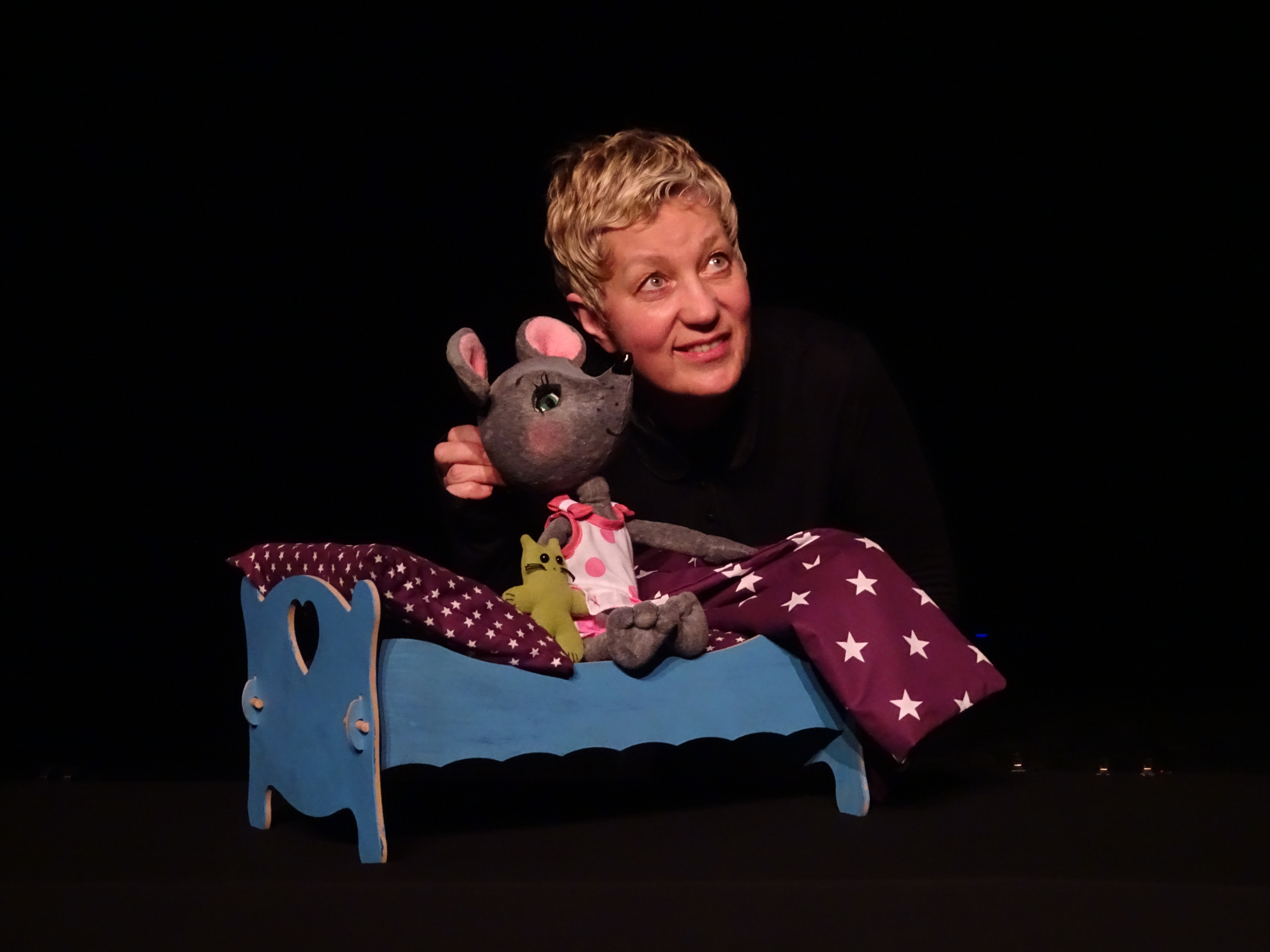 Vous allez découvrir le talent de la comédienne-marionnettiste. La petite souris Mulotte, manipulée à vue, se transforme en personnage complétement autonome, tellement vivant et attachant qu'on en oublie la comédienne derrière.