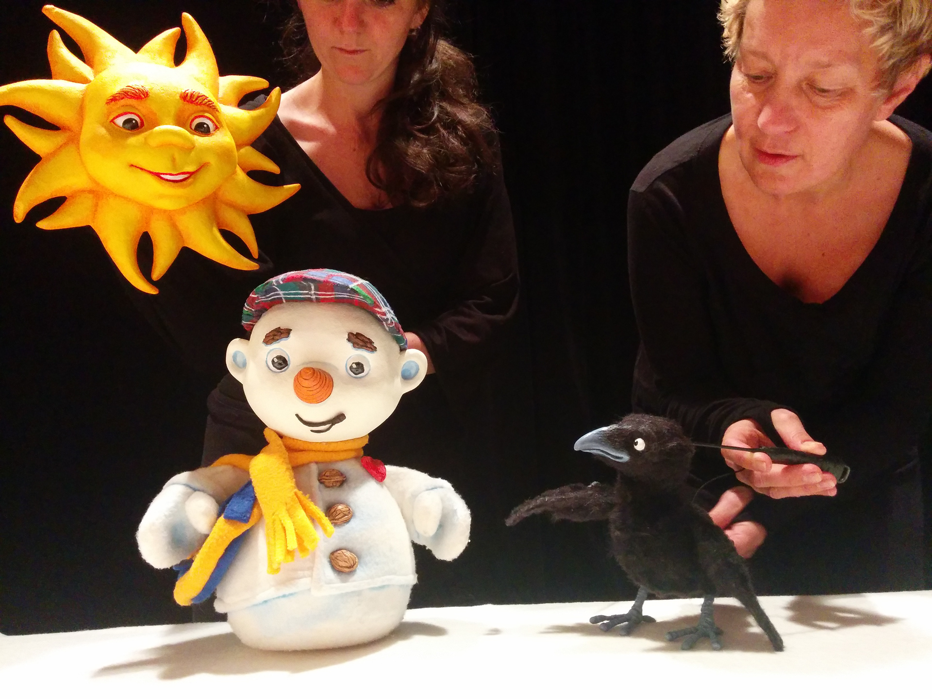 Quand on crée un spectacle pour de très jeunes spectateurs, plusieurs questions se posent. Que vont-ils apprendre de cette histoire ? Quelles valeurs va-t-on leur transmettre ? Comment leur parler pour qu’ils deviennent meilleurs ? Comment leur montrer qu’ils possèdent tous un trésor au fond d’eux-mêmes ? L’histoire du Bonhomme de neige qui voulait rencontrer le soleil est la parfaite illustration d’un cœur généreux. Le personnage principal partage avec ses amis tout ce qu’il a pour les aider, sans rien demander en retour. Le Bonhomme de neige ne reçoit que la joie de ses amis, leur reconnaissance envers lui et leur amitié. Cela n’a pas de prix ! La quête du Bonhomme de neige ne laisse indifférents ni les enfants ni les adultes. Au cours de l’histoire les petits spectateurs s’attachent à leur personnage préféré, ils veulent lui ressembler et ils le comprennent et le soutiennent parfaitement. Les enfants commencent à s’imaginer à l’intérieur de cette histoire et encouragent le Bonhomme de neige en lui donnant des conseils. Ils veulent tellement qu’il arrive chez le soleil et lui fasse sa demande ! Ce spectacle ouvre des pistes de discussion avec les enfants. Les aventures du Bonhomme de neige permettent de parler de la bonté de cœur, du don de soi et de la compassion. Ces valeurs fondamentales sont alors transmises aux enfants à travers les rencontres des personnages. Les jeunes spectateurs sont plongés dans une atmosphère magique et poétique. L’histoire du bonhomme de neige est simple et, racontée dans un langage accessible aux plus petits, elle délivre un message fort. Les belles images font rêver, la jolie musique les transporte dans un universenchanté, et chaque marionnette manipulée se transforme en personnage si vivant et si attachant que l’on en oublie les comédiennes. « Le Bonhomme de neige qui voulait rencontrer le soleil » est un cadeau à regarder et écouter pour le plaisir des yeux, des oreilles et du cœur !